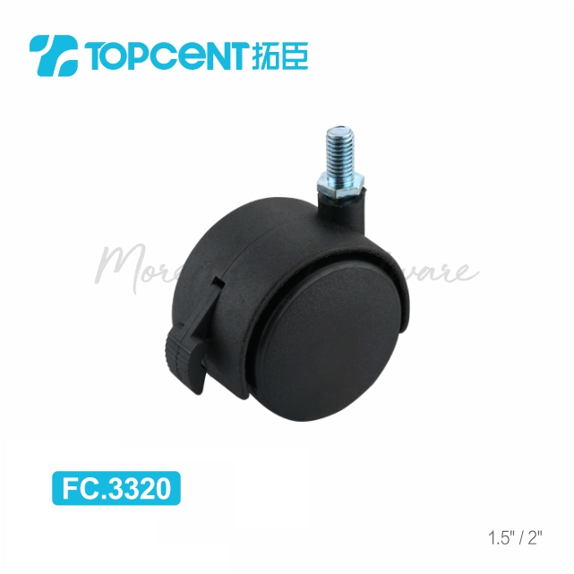 Heavy Duty 2 Inch Braked Swivel Casters with Polypropylene (PP) Wheels - TC02 Series Medium Duty Office Chair Casters for Furniture