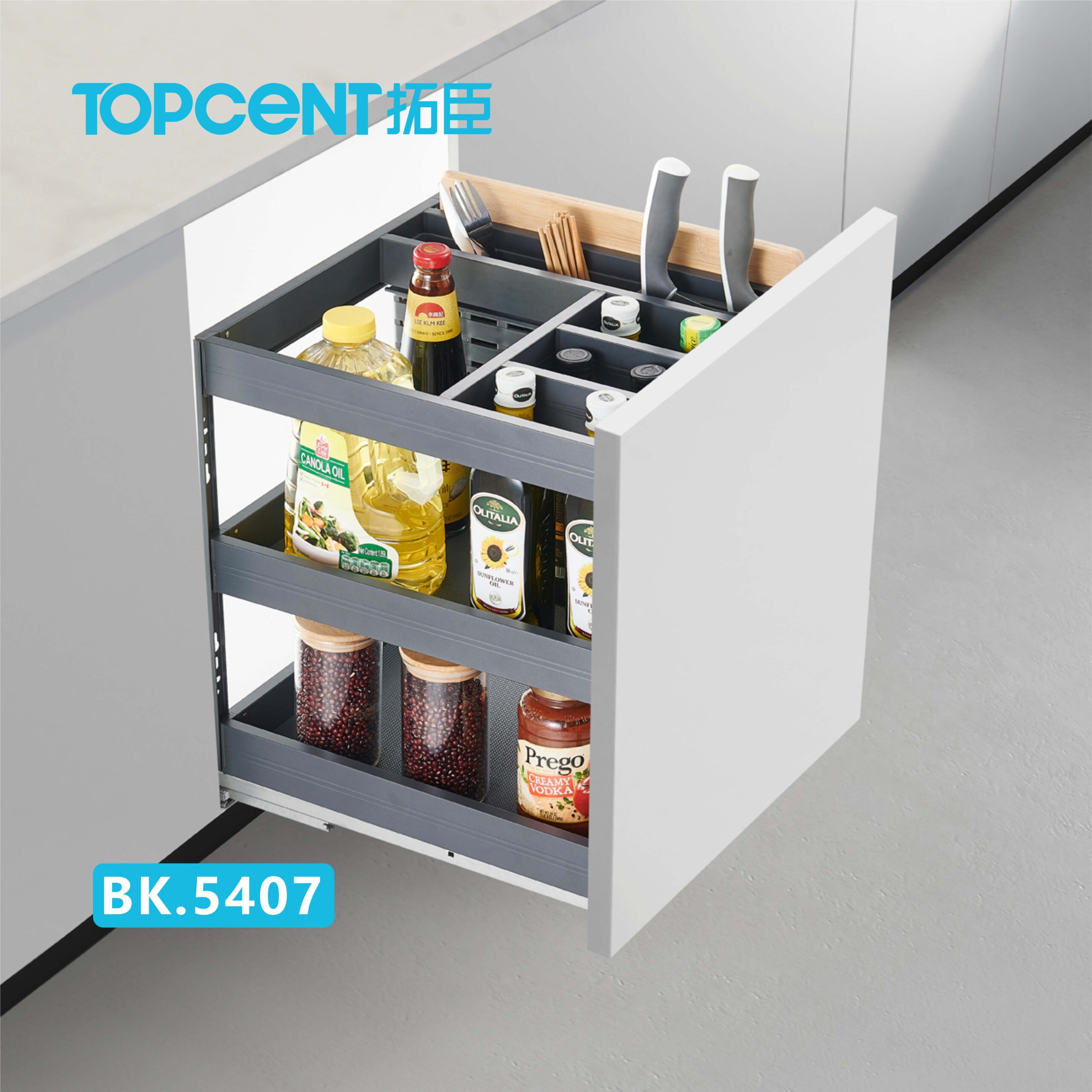 Aluminum Alloy Spice Drawer Basket with Soft-Close Concealed Slide