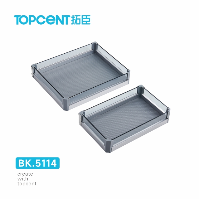 Drawer Basket with Ball Bearing Slide & Soft-Close (201 Board/Aluminum/Tempered Glass)